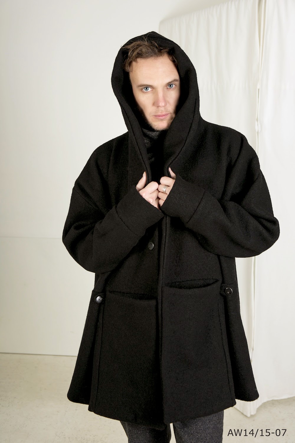 中でもコレクション中最もビッグシルエットのスクウェアコートなんかも。