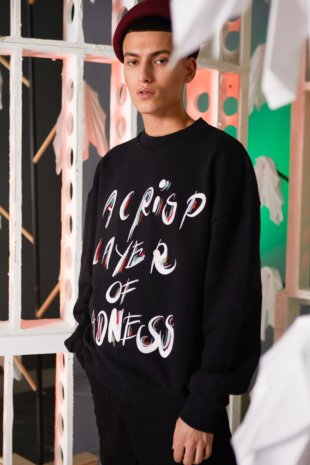 今季のコレクションテーマを全て刺繍で施したスウェットが登場しました。