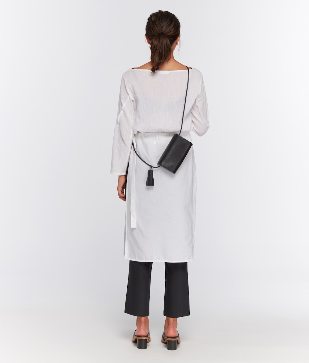 Smooth black leather side bag with interior natural Veg Tan leather
