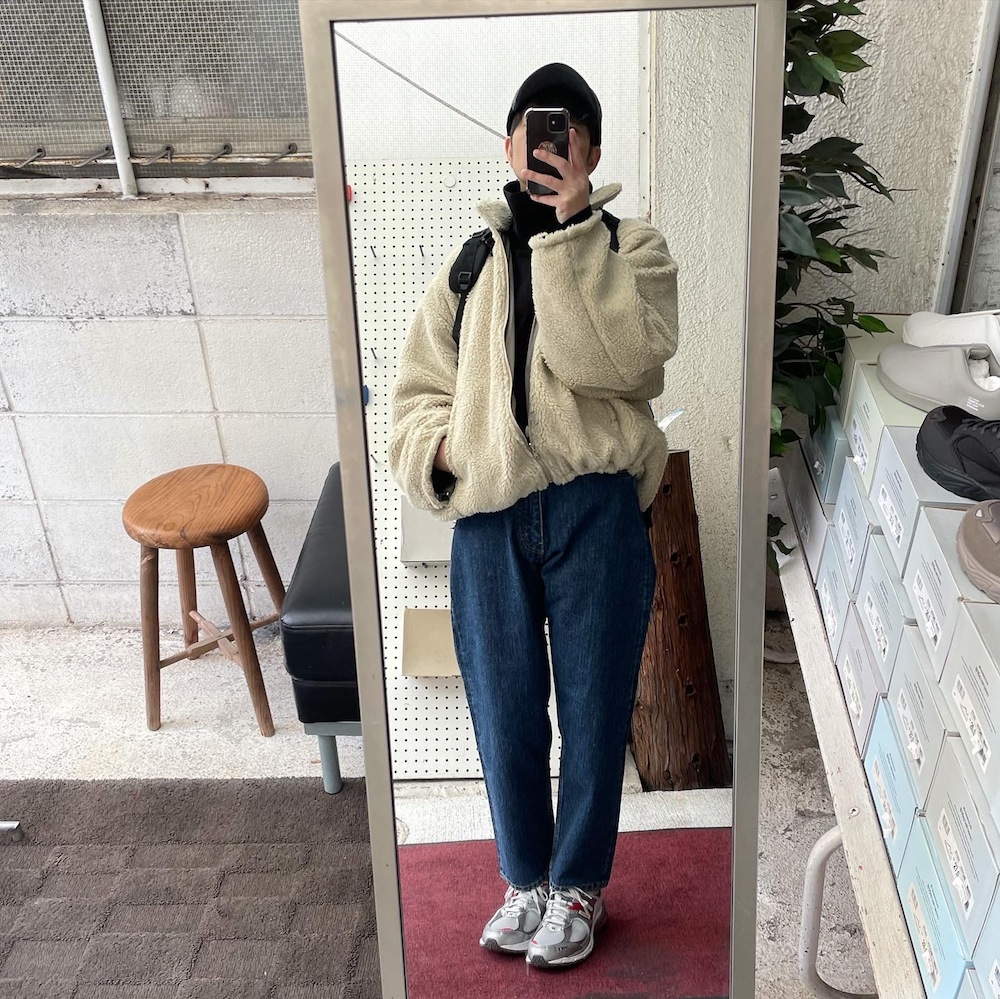 それだけではなく、このブルゾンはボア面とナイロン面のリバーシブルで着ることができるんですね、まぁボア面できる事が多くなりそうですが、天候によってはナイロン面も活躍しそう。