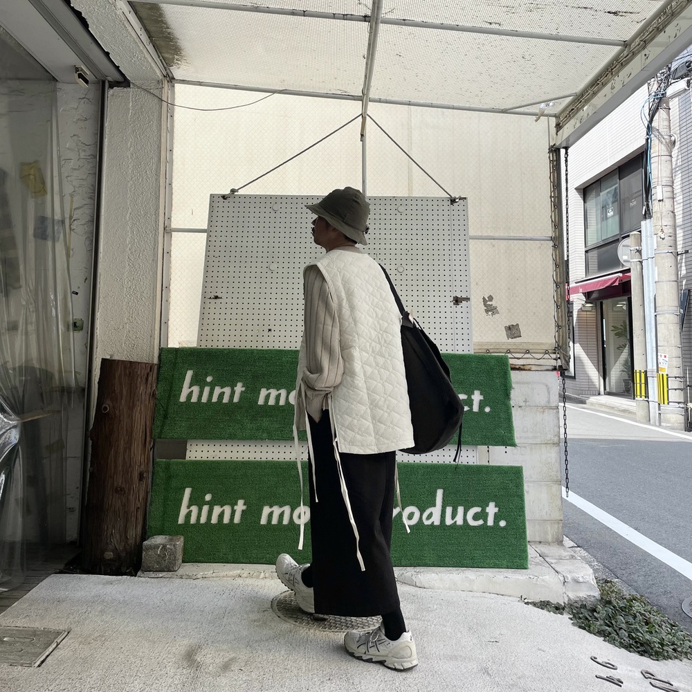 ゼッケンのように両サイドの紐で着用するベスト。紐を垂らしアクセントに、ノマディックな雰囲気を作ってくれます。