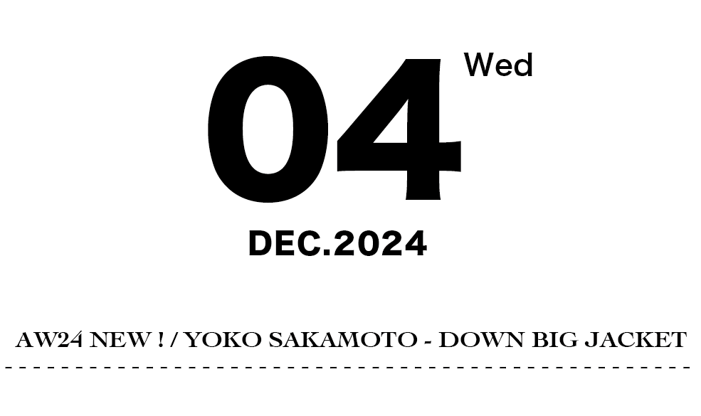 先日、新作の DOWN BOMBER JACKET をご紹介させていただきましたが、こちらは数シーズン続く人気品番の " DOWN BIG JACKET " 。今季ももちろんマットでクラフト感のあるヨーコらしい WATER REPELLENT COTTON FABRICのブラック。
