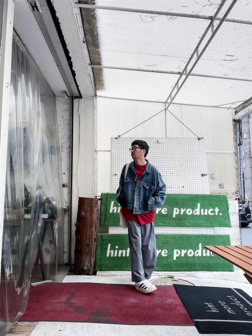 このインディゴのトーンになると合わせたくなるのが " 赤 " のインナーなんですよね。